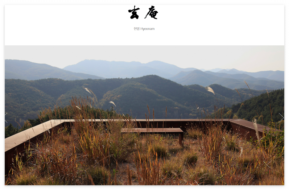 숲의 바다위에 놓인 듯한 현암에서 바라보는 자연 풍광을 차와 함께 즐기실 수 있습니다. 사유원에서 첫번째로 지어진 현암은 작은집이지만 계절에 따라 변하는 거대한 자연을 볼 수 있는 멋진 곳입니다.