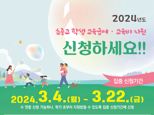 2024년 새 학기가 시작되면서 교육급여 및 교육비를 지원받을 수 있는데 특히 초등학교에 새로 입학하는 학생은 신규 신청을 별도로 해야 지원금을 받을 수 있습니다. 교육급여 바우처는학생 1인당 교육활동 지원비이니 학기 초부터 지원을 받기 위해서는 집중 신청기간에 신청을 해서 혜택을 빨리 받으시기 바랍니다.