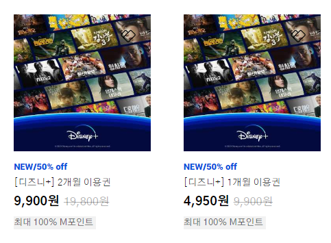 현대카드 M포인트를 사용해서 디즈니플러스 이용권을 할인받아 구매할 수 있습니다. 현대카드의 M포인트로 디즈니플러스 1개월, 2개월 이용권을 50% 할인받을 수 있습니다. M포인트를 가지고 있다면 디즈니플러스를 반값에 구매해서 시청해 보시기 바랍니다.