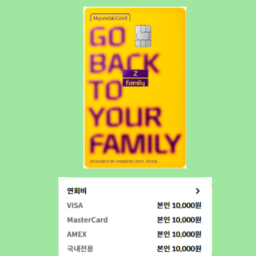 현대카드 Z 패밀리는 매달 반복되는 패밀리용 소비에 대해 할인을 해 주는 카드입니다.