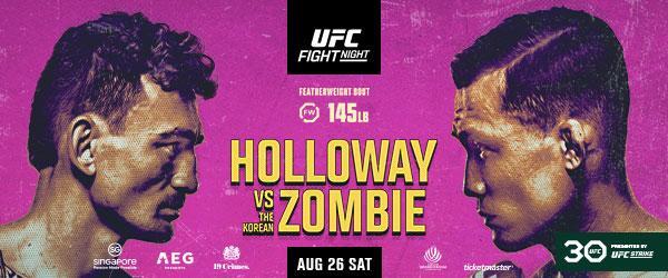 8월 26일 싱가포르 인도어 스타디움에서 UFC 페더급 맥스 할로웨이와 정찬성의 경기가 열린다. 한국시간으로는 오후 9시 생방송으로 실시간 시청이 가능하다.